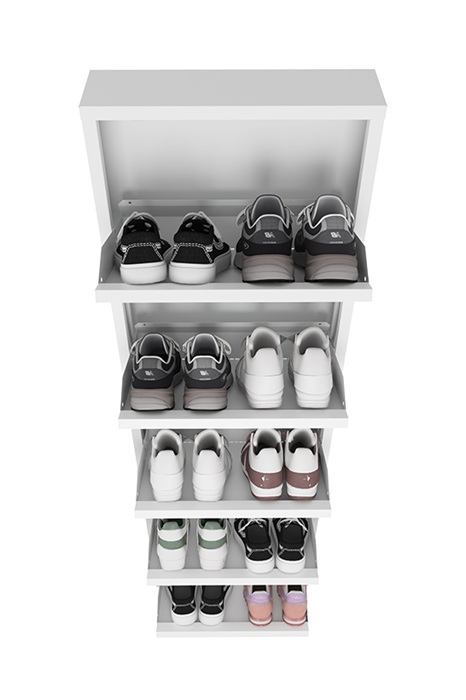 Обувница Практик ОМ-5 белая предназначена для хранения обуви. Обувница состоит из четырех отделений, каждое отделение вмещает 2 пары обуви (до 43 размера). Изготовлена из стали, поставляется в собранном виде. Цвет: белая Ral 9003. Тип покрытия: порошковое