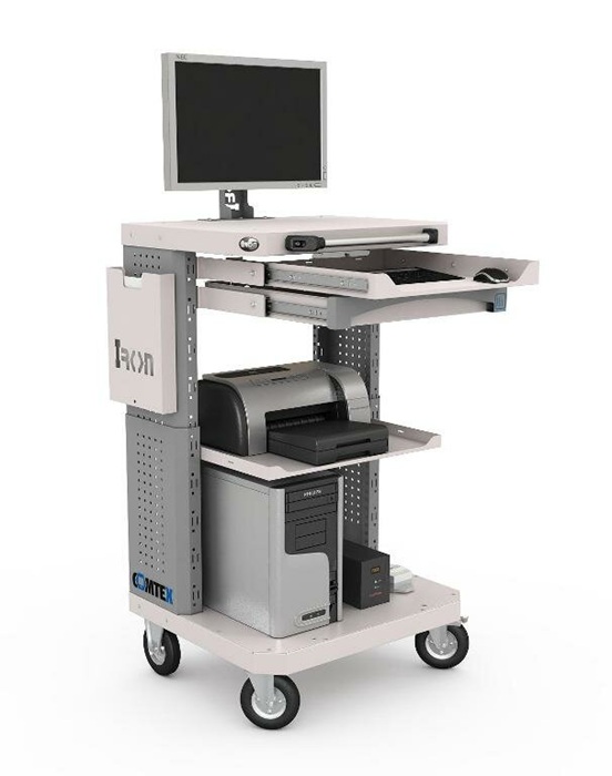 Дополнительно на тележку можно установить: выдвижную полку Comtex, выдвижной ящик Comtex, кронштейн для монитора, кронштейны для RACK модуля, цоколь для тумбы Comtex, лоток для тумбы/тележки Comtex, карман для документов А4 и другие аксессуары.