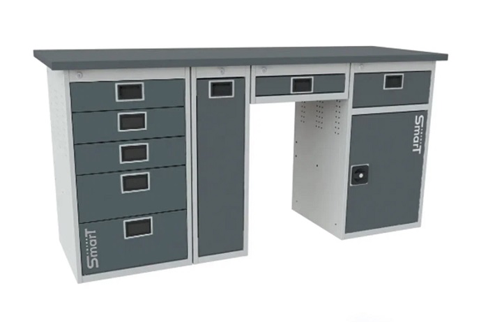 Металлические верстаки серии SMART предназначен для обустройства легких производств, мастерских и гаражей. Все элементы изготовлены из высококачественной листовой стали, а покрытие устойчиво к механическим воздействиям и агрессивным жидкостям. Представляют собой сборно-разборную конструкцию.