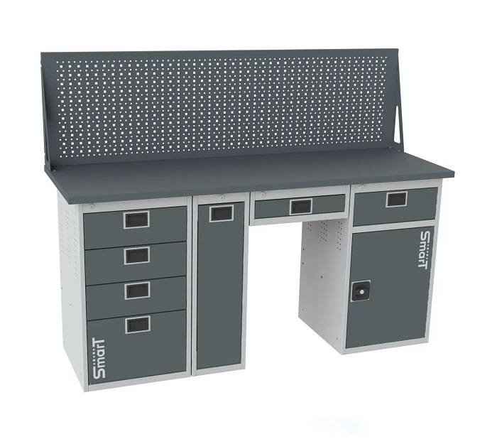 Дополнительно на верстак можно установить: перфорированный экран SMART 1760 мм, комплект освещения SMART, аксессуары на экран SMART, возможна установка системы мастер ключ.