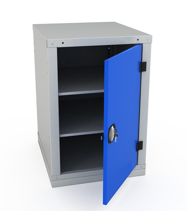 Цвет: корпус верстака - серый Ral 7035, лицевая панель тумбы Ral 5005. Поставляется в разобранном виде.