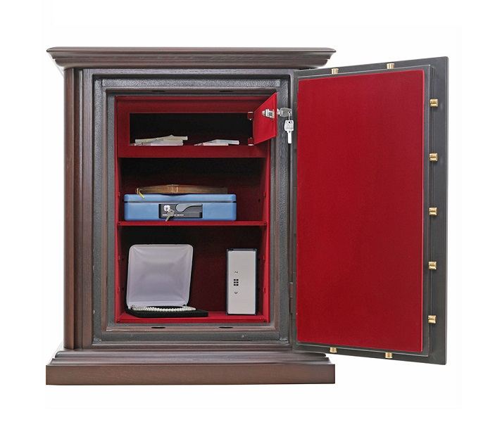 Valberg Гарант Евро 67 Т Д предназначен для сохранности документов и ценностей при пожаре и взломе. Рекомендованная сумма хранения денег до 6,5 млн. руб. для физических лиц и до 2 млн. руб. для юридических лиц. Устойчивость к взлому по ГОСТ Р 50862-2017: класс 2 (ГОСТ Р). Огнестойкость: ГОСТ Р 57384-2017: класс 60Б (ГОСТ Р). При заливке двери и корпуса сейфа используется запатентованная система армирования огнестойкого бетона. Толщина защитного слоя двери - 33 мм, общая толщина двери - 105 мм. Толщина боковых стен -77 мм, задней стенки - 51 мм. В сейф установлена: 3х сторонняя ригельная система запирания; защита замка и ригелей от высверливания и выбивания; система блокировки ригельного механизма при выбивании замка; тепловой замок, усиленный огнестойким уплотнителем. Сейф Valberg Гарант Евро 67 Т Д (дуб) закрывается ключевым замком KABA MAUER (под заказ возможно установить - электронный кодовый замок PS610/E036; биометрический кодовый замка PS610FD/E36FD). Предусмотрена возможность анкерного крепления к полу (анкерный болт в комплекте). Внешняя отделка выполнена из натурального дерева, внутренняя отделка из бархата. Покрытие ручек: матовый хром или золото. Цвет: корпус - №11-А, внутренняя отделка - С-1059. Возможны другие варианты окрашивания.